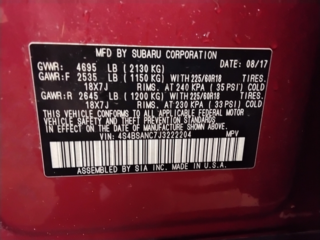 | VIN | 4S4BSANC7J3222204 |