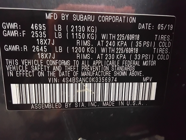 | VIN | 4S4BSANC0K3356974 |